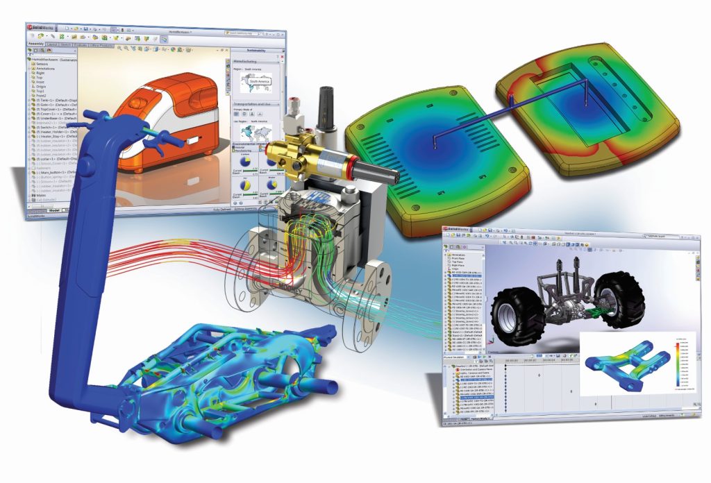 Simulations of structures, machine elements and assemblies using the finite element method and CFD/CAE simulations of fluid dynamics and thermodynamics, using the finite volume method.